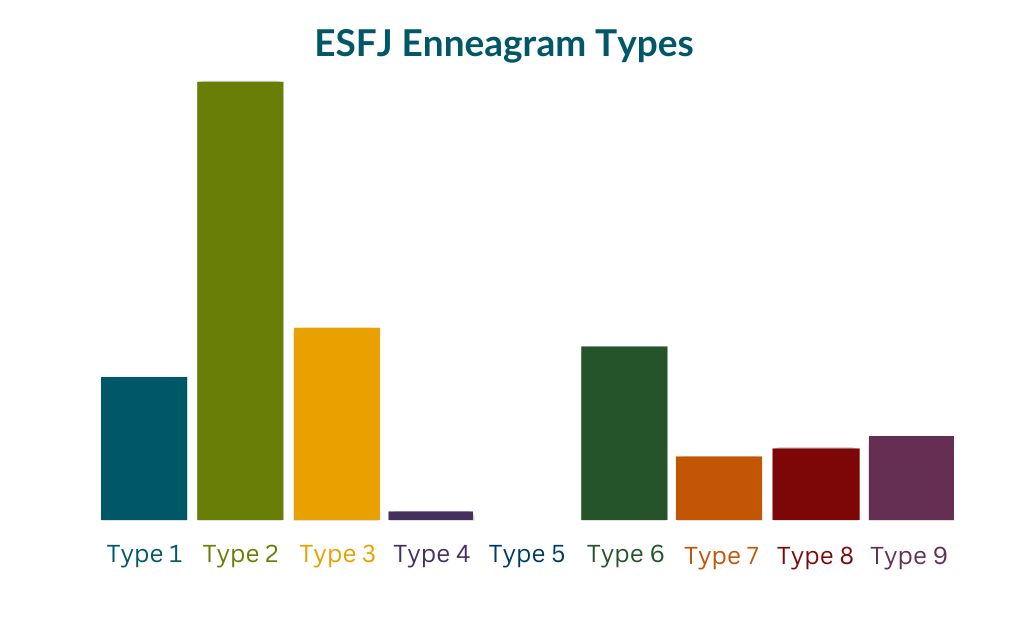 如您所見,ESFJ 最常見的是 2 型,1 型、3 型和 6 型也相當常見。您還會注意到,民意調查結果顯示零 ESFJ 是 5 型(4 型也幾乎為零),但這并不意味著 ESFJ 不能是 5 或 4;只是沒有人回應民意調查。