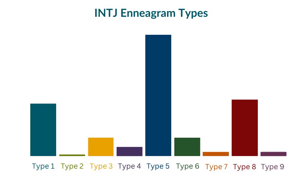 如您所見,INTJ 最常見的是 5 型,1 型和 8 型也緊隨其后。8型在INTJ中很常見,這是一個有趣的結果,因為其他人所做的較早的調查通常表明,8型很少是內向的。我認為這種轉變主要是由于人們意識到九型人格類型是由動機而不是特質決定的。您還會注意到,民意調查結果顯示,INTJ 的 2 型、7 型和 9 型比例非常低。