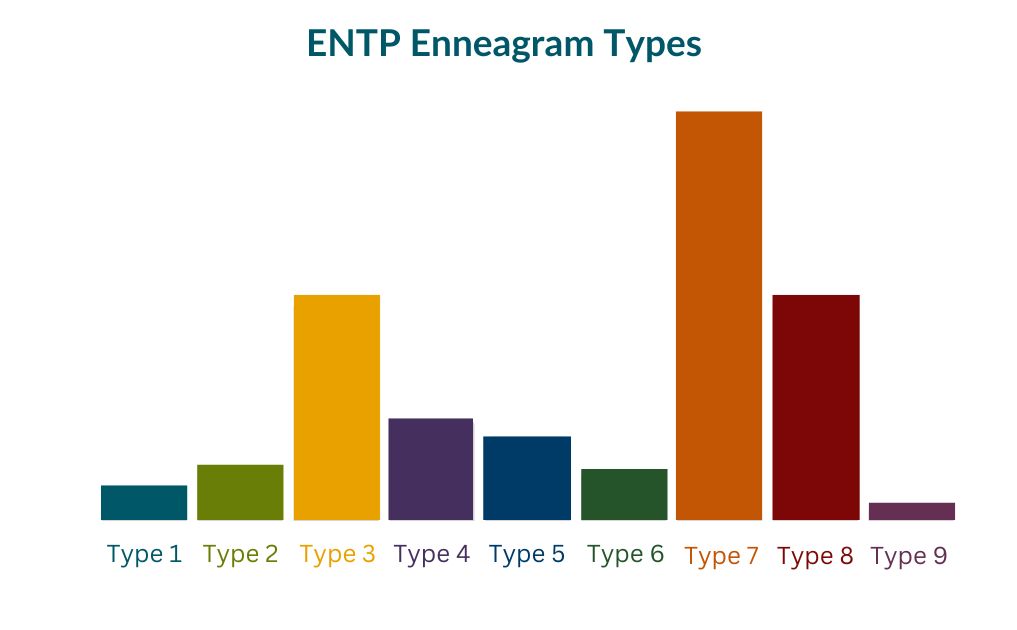 您會注意到 ENTP 通常是 7 型,但 3 型和 8 型也是一種常見的可能性。我們看到,ENTP 是 9 型是非常罕見的,而 ENTP 是 1 型幾乎同樣罕見。