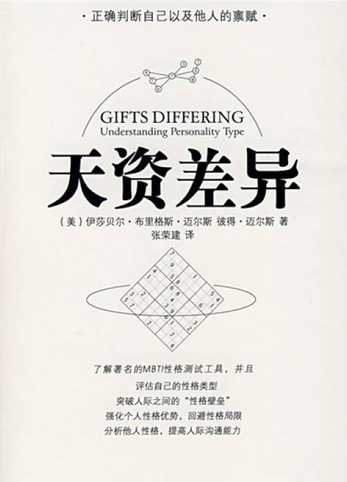 《天資差異 人格類型的理解》一書二十多年來持續再版,印數75000冊。作者是邁爾斯-布里格斯類型指數人格測試表(MBTI)的創始人,該人格類型量表是有史以來使用最廣泛的人格類型測試工具。本書梳理了我們對人格類型的理解,是對該人格類型測試工具的基本要點,以及在實際生活中的應用的解釋。根據榮格理論的觀點,本書區別了四種主要的人格類型,并解釋了這些性格特質在人們面對世界和做出決定中的作用。本書還說明了這些因素對每種性格類型的人在學習、工作和人際關系諸方面的影響。伊莎貝爾·布里格斯·邁爾斯將一生奉?
